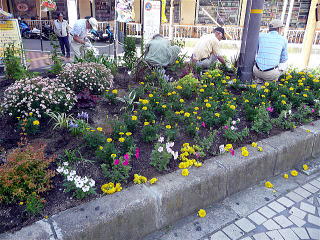 除草と花柄摘み作業 平成23年6月24日(金)9:30〜11:00 ポケットかだん中央にて 6月10日に夏バージョンに模様替えした花卉は根付きもよく、マリーゴールドの黄色がとても鮮やかです。マーガレットやマリーゴールドの花柄を喜んで持ち帰られる方がおられました。最後にたっぷりと水やりを行いました。 近隣のメンバーの皆さん水やりをお願いします! |