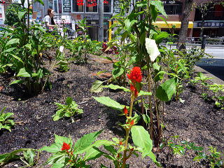 | 苗の植栽作業 平成23年6月28日(火)9:30〜11:00 ポケットかだん中央にて 梅雨晴れのもとで「ポケットかだん中央」は色鮮やかな花が咲き誇っています。 今回は昆陽南公園苗圃を活用する会の代表よりご提供いただいた鶏頭、サルビア、ブルーサルビア、マリーゴールド等の苗約30株をバランスよく植栽しました。照りつける真夏の太陽に良く似合うと思います。 皆さん暑い夏を楽しみましょう! |